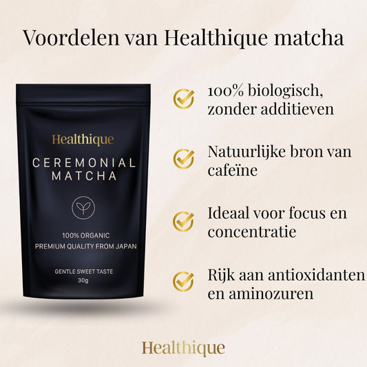 Ontdek de kracht van onze Healthique matcha en laat je meevoeren door zijn authentieke smaak.